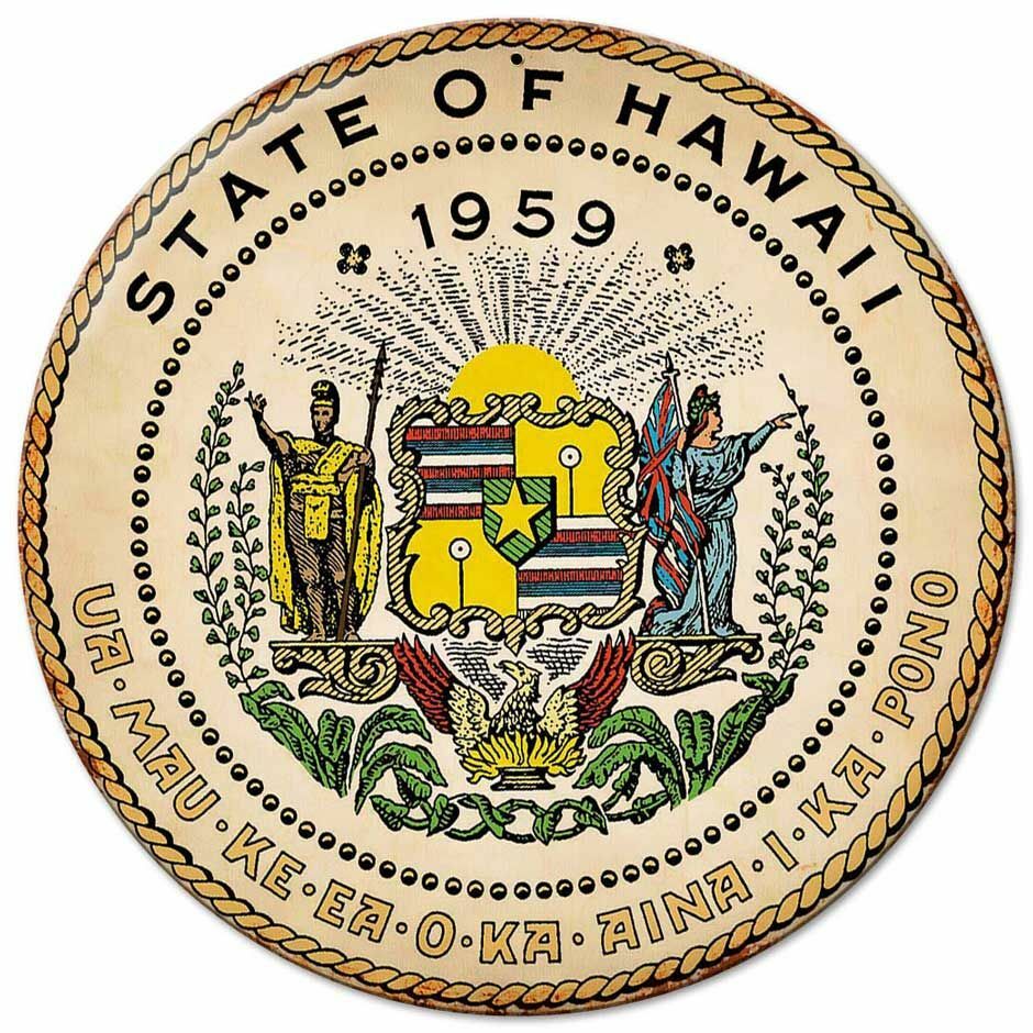 1959 HAWAII STATE SEAL 14" ROUND HEAVY DUTY USA MADE METAL ADVERTISING SIGN