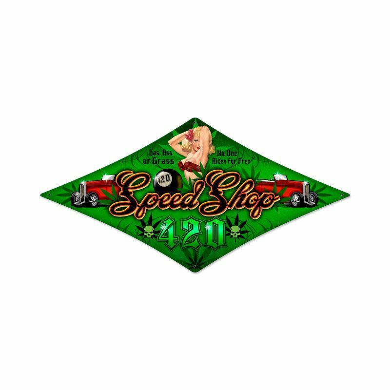 420 SPEED SHOP MARIJUANA 24" DIAMOND SHAPED HEAVY DUTY USA MADE METAL ADV SIGN