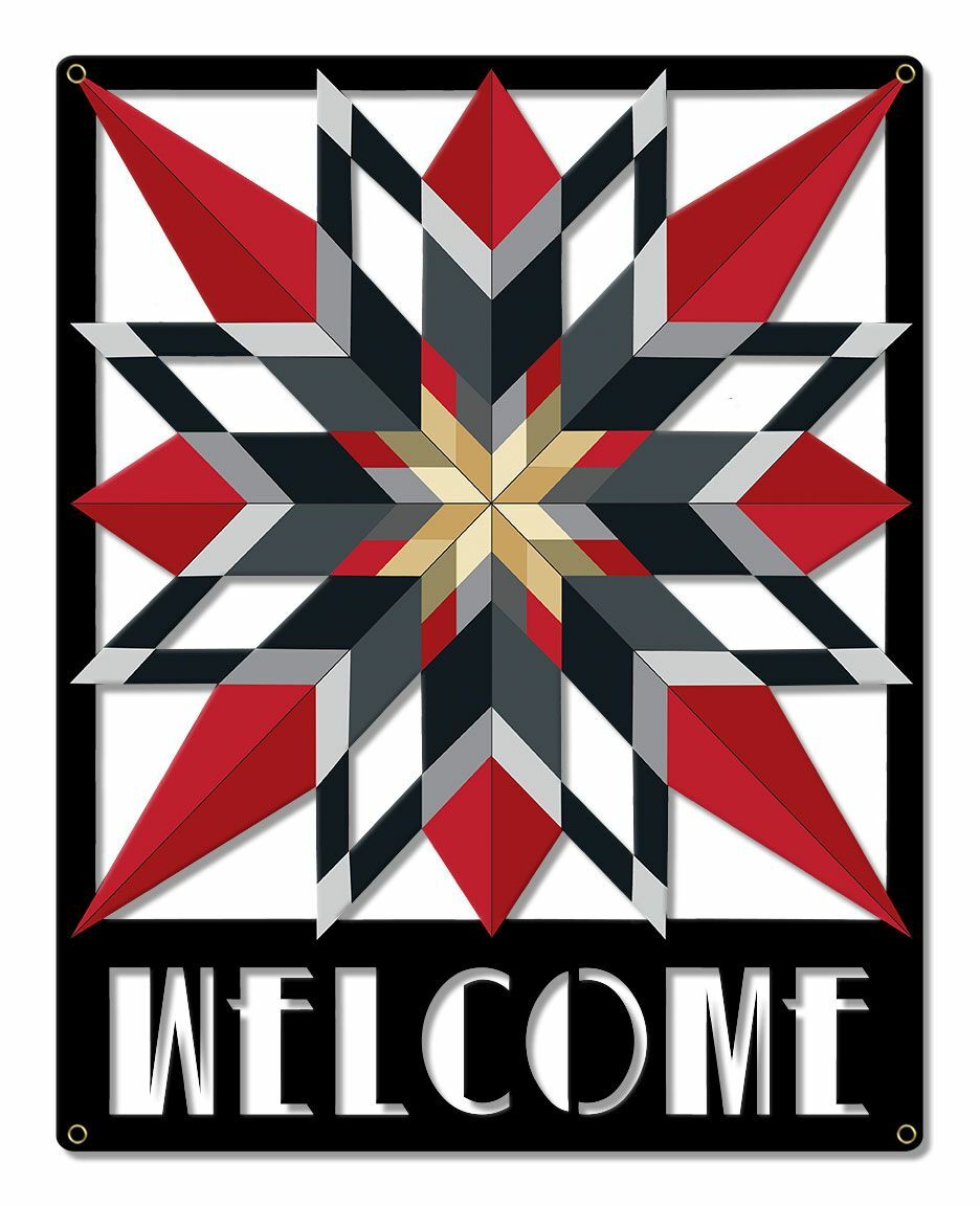 16 POINT STAR QUILT BLOCK PATTERN WELCOME 15" HEAVY DUTY USA MADE METAL SIGN