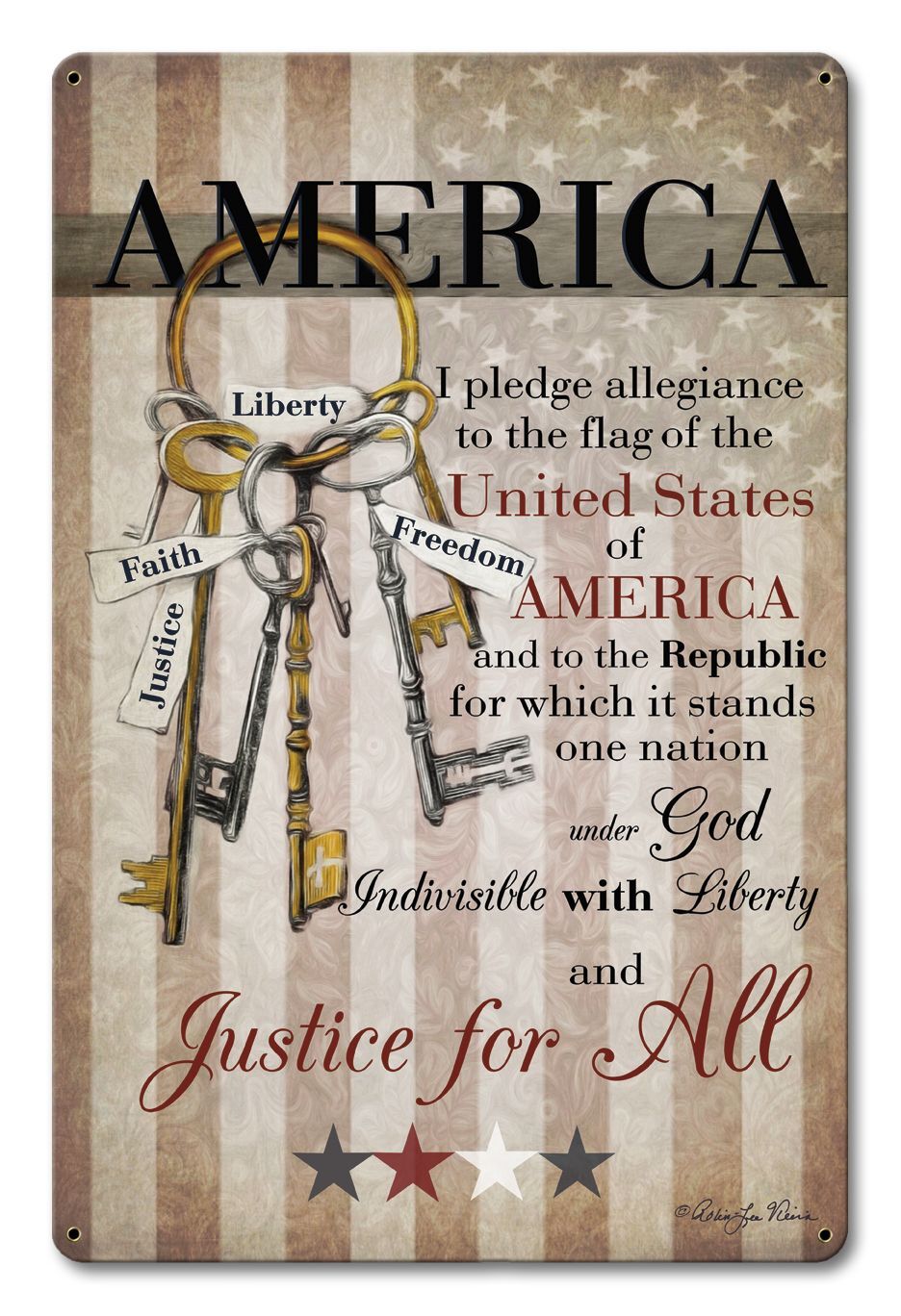 AMERICA FLAG PLEDGE OF ALLEGIANCE 18" HEAVY DUTY USA MADE METAL HOME DECOR SIGN