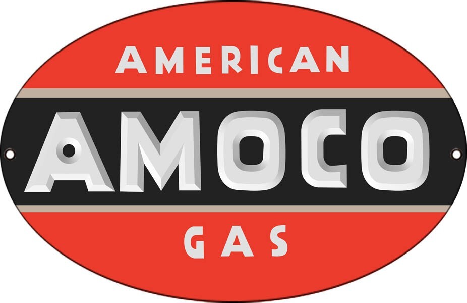 AMERICAN AMOCO GAS 14" OVAL HEAVY DUTY USA MADE METAL GASOLINE ADVERTISING SIGN