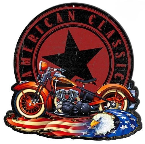 THE WORDS "AMERICAN CLASSIC" ARE DISPLAYED IN BOLD, STRIKING LETTERS, MAKING THIS SIGN A TRUE TRIBUTE TO THE TIMELESS AMERICAN SPIRIT.