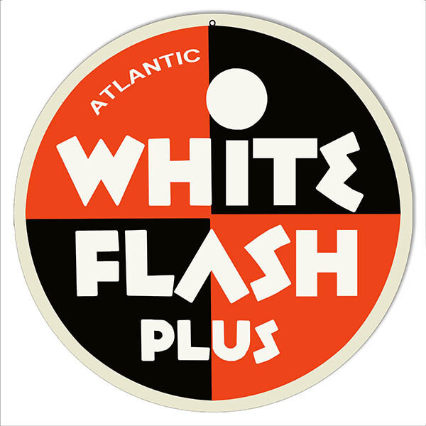 ATLANTIC WHITE FLASH PLUS 14" ROUND HEAVY DUTY USA MADE METAL GAS OIL ADV SIGN