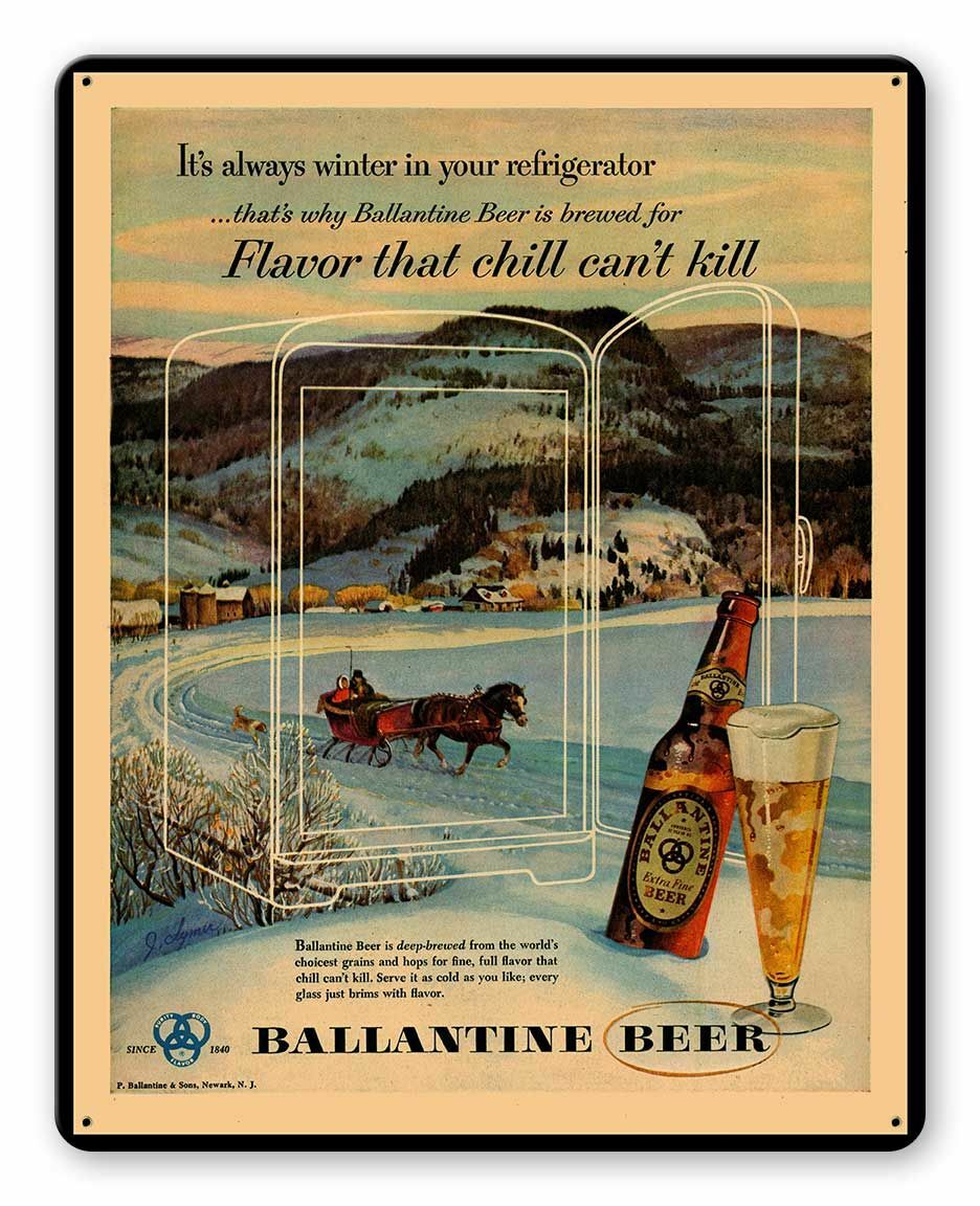 BALLANTINE BEER IS DEEP-BREWED FROM THE WORLD'S CHOICEST GRAINS AND HOPS FOR FINE, FULL FLAVOR THAT CHILL CAN'T KILL. SERVE IT AS COLD AS YOU LIKE; EVERY GLASS JUST BRIMS WITH FLAVOR.