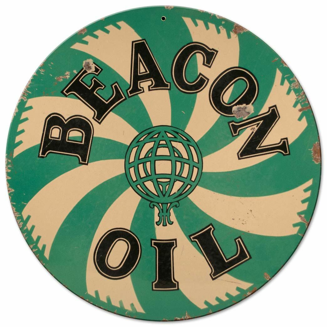 BEACON OIL 14" ROUND HEAVY DUTY USA MADE METAL GAS STATION ADVERTISING SIGN