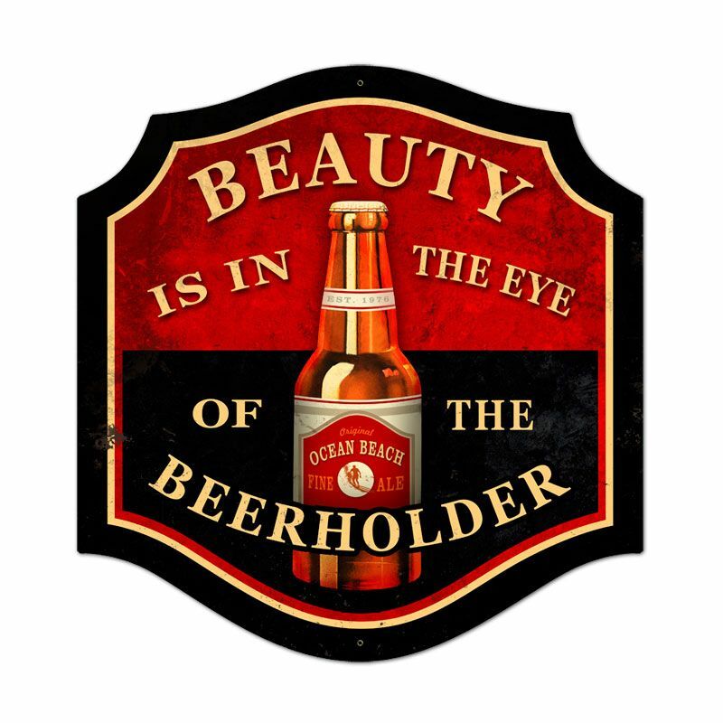 BEAUTY IS IN THE EYE OF THE BEERHOLDER 20" HEAVY DUTY USA MADE METAL DECOR SIGN