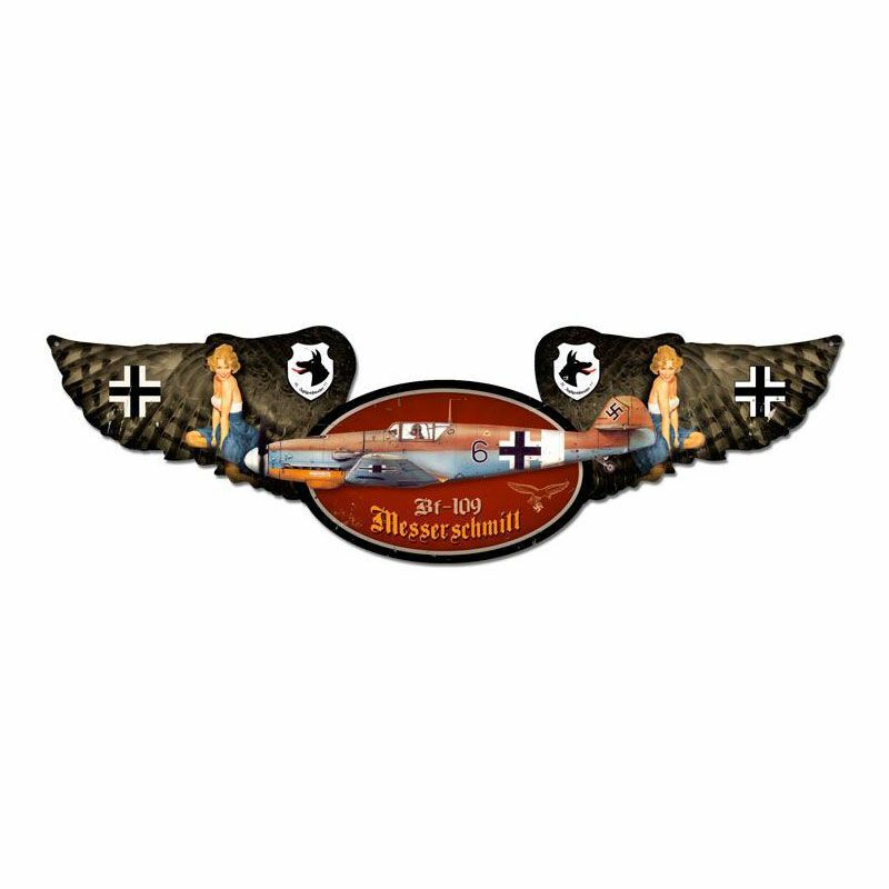 BF-109 MESSERSCHMITT WAR PLANE RISQUE GIRLS 35" HEAVY DUTY USA MADE METAL SIGN