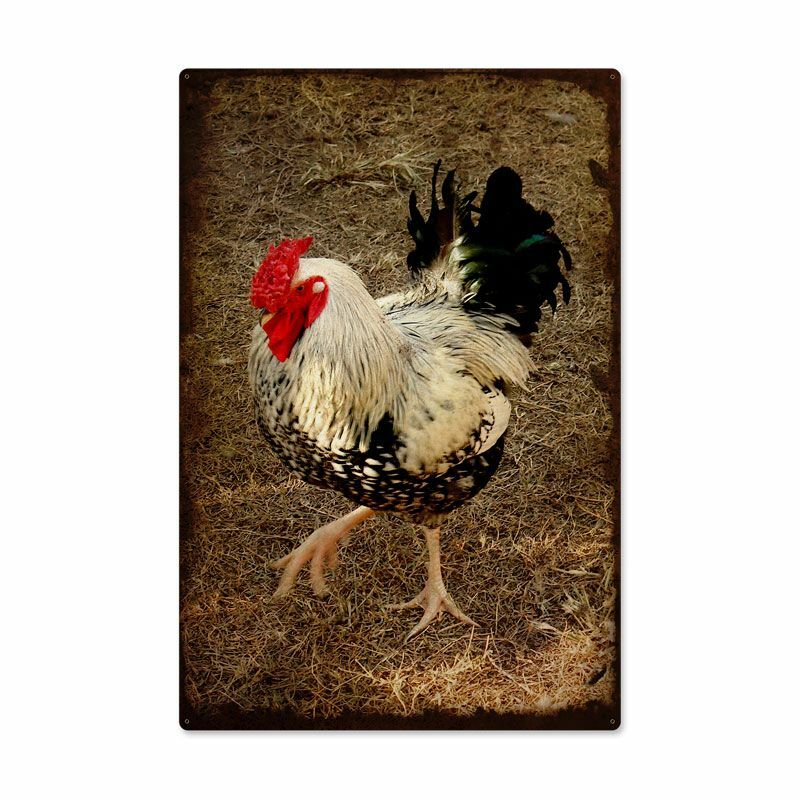 BLACK WHITE ROOSTER RED COMB HEAVY DUTY USA MADE METAL 36" ADVERTISING SIGN
