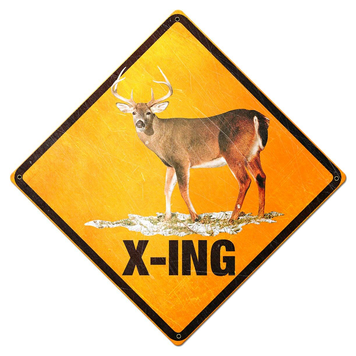 BUCK DEER CROSSING X-ING HEAVY DUTY USA MADE METAL ROAD WAY CAUTION WARNING SIGN