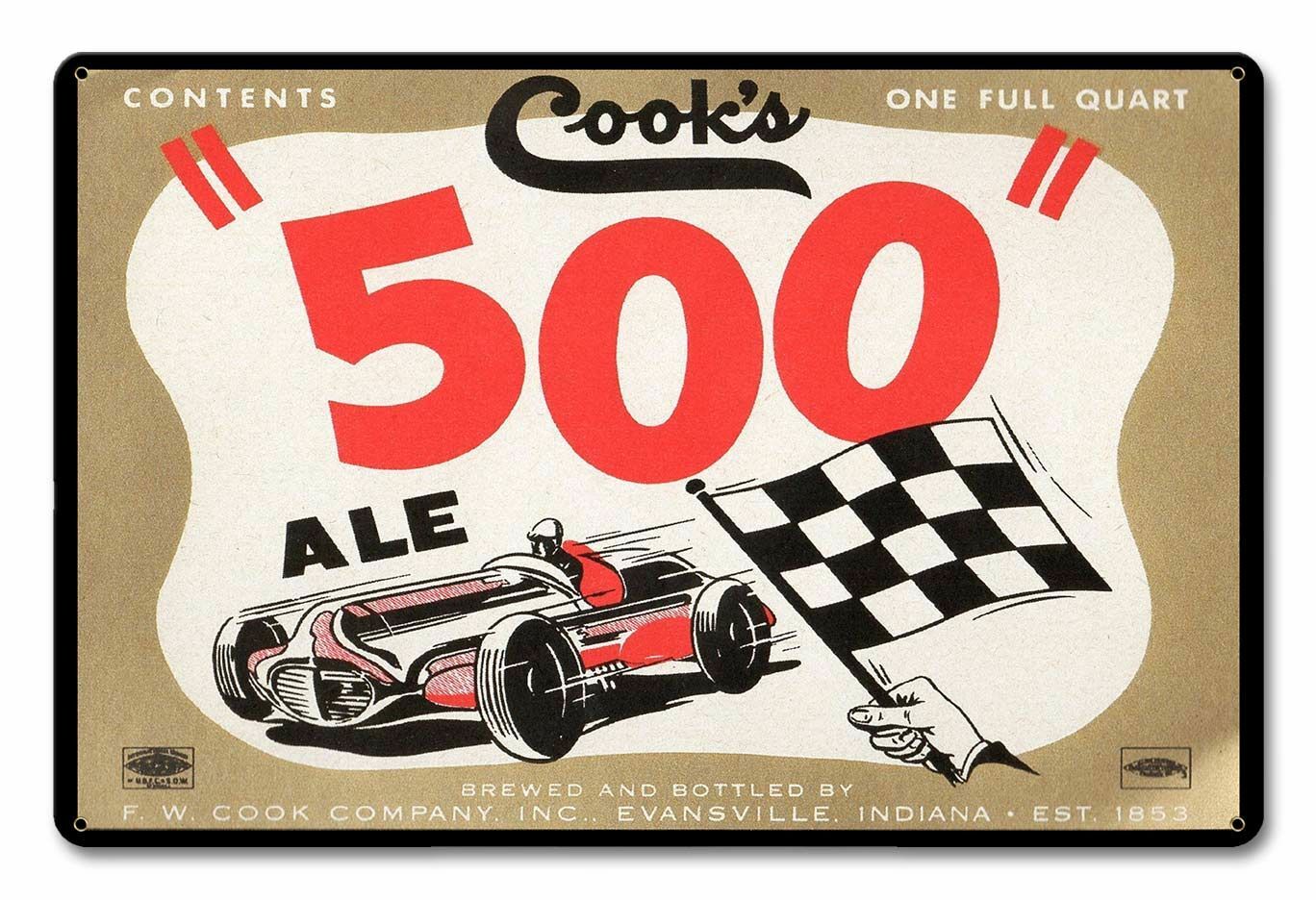 COOK'S 500 ALE RACE CAR RACING 18" HEAVY DUTY USA MADE METAL ADVERTISING SIGN