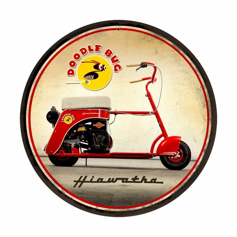 DOODLE BUG HIAWATHA SCOOTER BIKE 14" ROUND HEAVY DUTY USA MADE METAL ADV SIGN