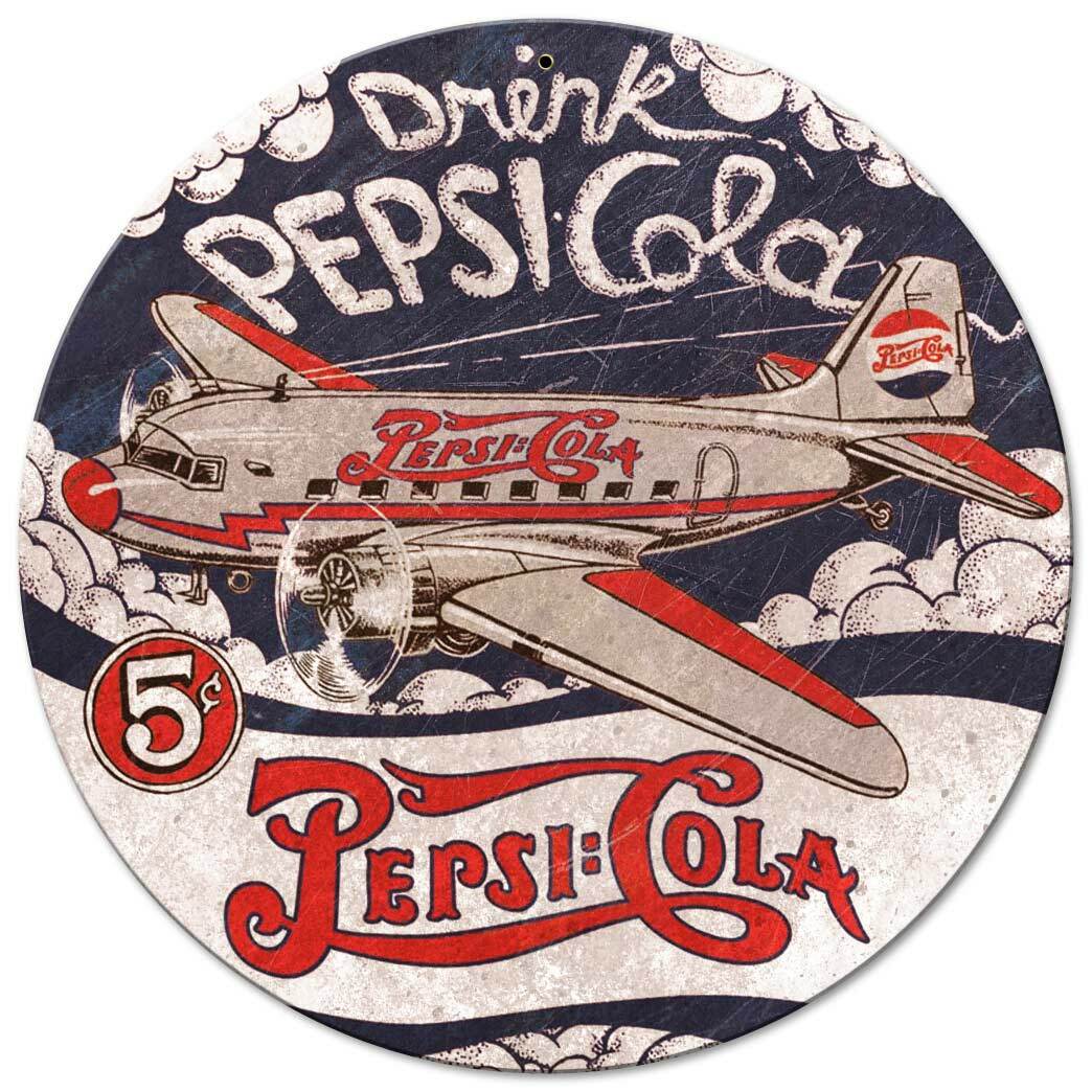 DRINK PEPSI COLA DC3 PLANE 14" ROUND HEAVY DUTY USA MADE METAL ADVERTISING SIGN
