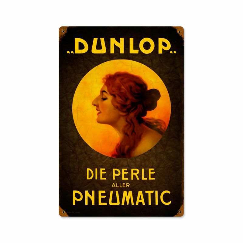 DUNLOP THE PEARL OF ALL PNEUMATIC 18" HEAVY DUTY USA MADE METAL GERMAN ADV SIGN