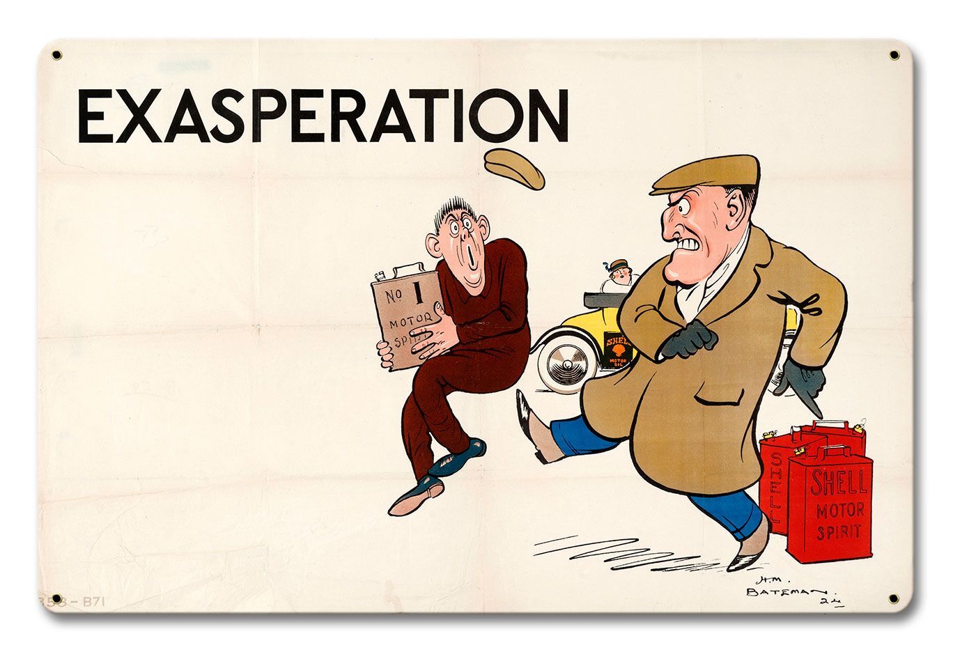 EXASPERATION BATEMAN SHELL 18" HEAVY DUTY USA MADE METAL GAS ADVERTISING SIGN