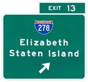 EXIT 13 INTERSTATE 278 ELIZABETH NJ STATEN ISLAND 24" HEAVY DUTY USA METAL SIGN
